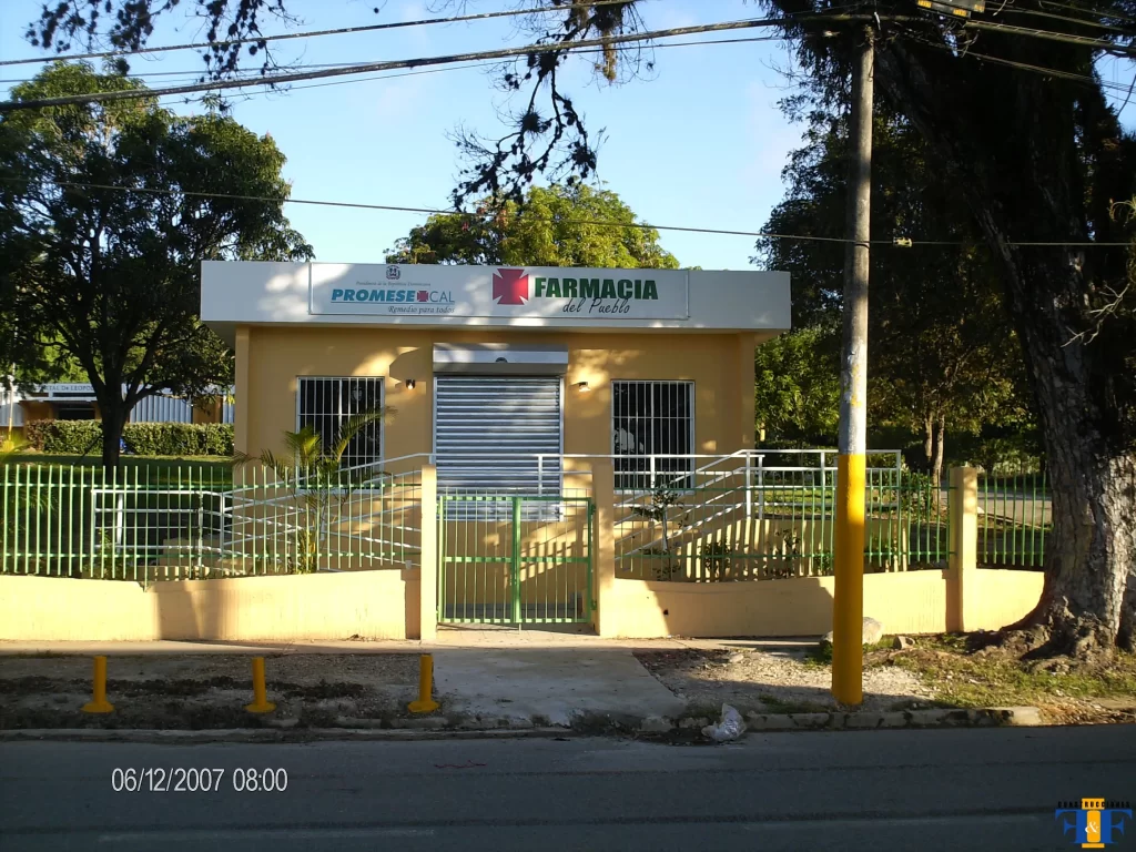Proyecto gubernamental desarrollado entre 2006 y 2008 para el diseño y construcción de 24 Farmacias del Pueblo distribuidas en distintas localidades del país. Participación como contratista de obras civiles, garantizando la infraestructura necesaria para ampliar el acceso a medicamentos y fortalecer la red de salud pública nacional.