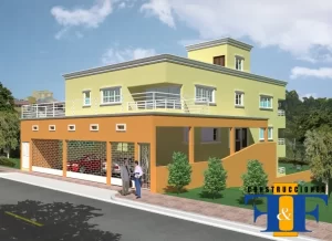 Proyecto ejecutado para el diseño y construcción de una residencia moderna de dos niveles, ubicada en el sector urbano de Santiago, República Dominicana. La obra se caracteriza por un estilo arquitectónico contemporáneo con fachada en tonos cálidos, balcones perimetrales y áreas exteriores ajardinadas. Incluye espacios funcionales como garaje, accesos peatonales, y una distribución interior orientada al confort y la eficiencia.